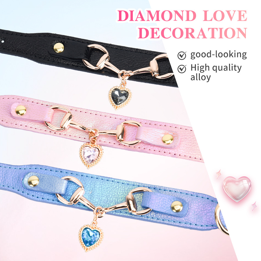 Heart-shaped PU Leather Jewelry Shiny Rhinestone Cat Collar