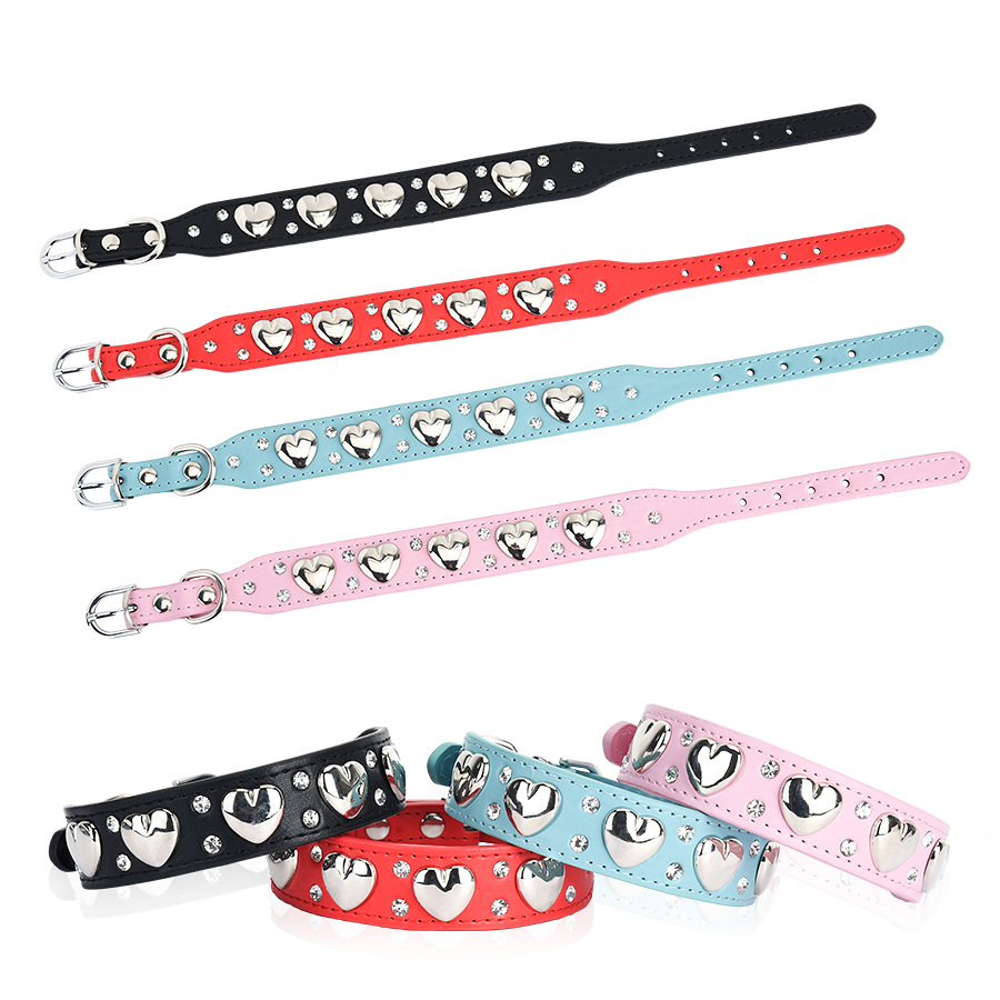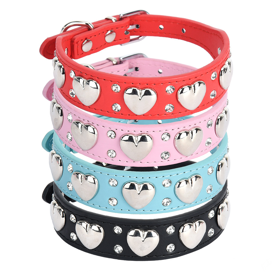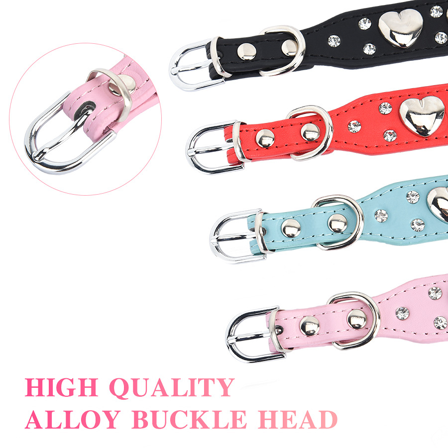Luxury Anti-Explosion Leather Shiny Rhinestone Solid Personalized Dog Collars